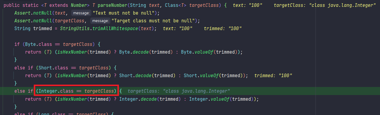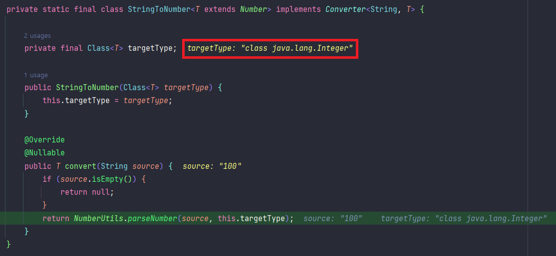 - StringToNumber의 targetType을 보면 Integer Class로 디버깅됨을 확인할 수 있다
