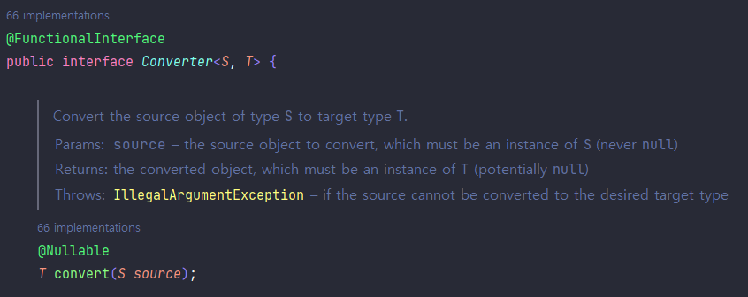 Spring에서는 Converter라는 확장 가능한 인터페이스 형태의 컨버터를 제공해주고 있다