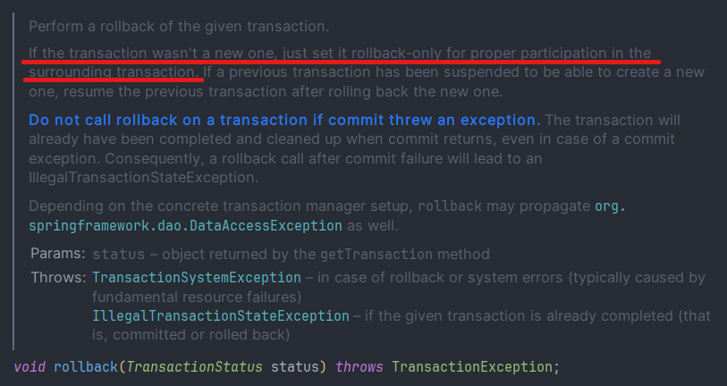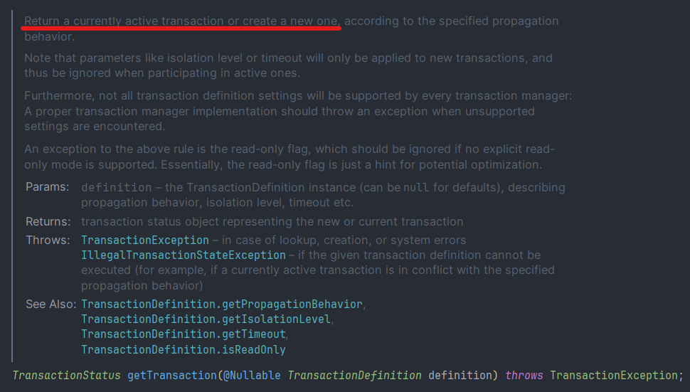 여기서 추가적으로 알아야 할 점은 TransactionDefinition이다