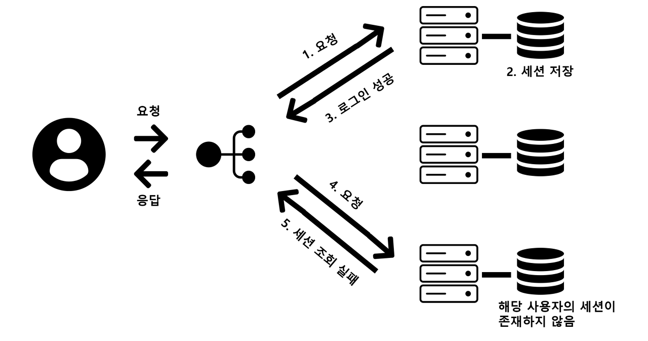 그러나 단순하게 세션을 관리하게 된다면 위에서 본 것처럼 세션 불일치라는 문제가 발생하게 된다