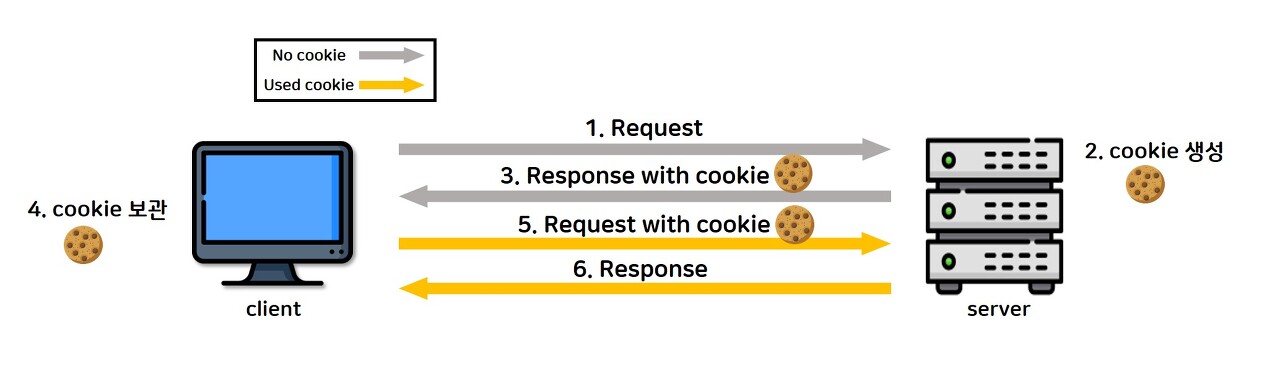 - Server가 쿠키를 발급해준다면 Client는 별도로 쿠키를 조작하지 않아도 매 요청마다 쿠키가 헤더에 실려서 전달된다
