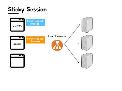 Sticky Session은 간단하게 말하면 Client의 첫 요청에 대해서 응답을 준 Server에 대해서 이후 모든 요청을 해당 Server로 보내는 방식이다