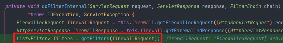 FilterChainProxy에서는 현재 요청을 처리할 Filter들을 가져오는 로직이 보인다