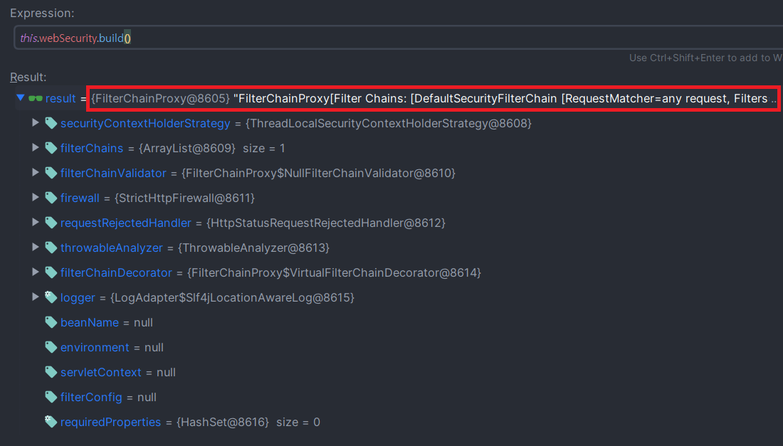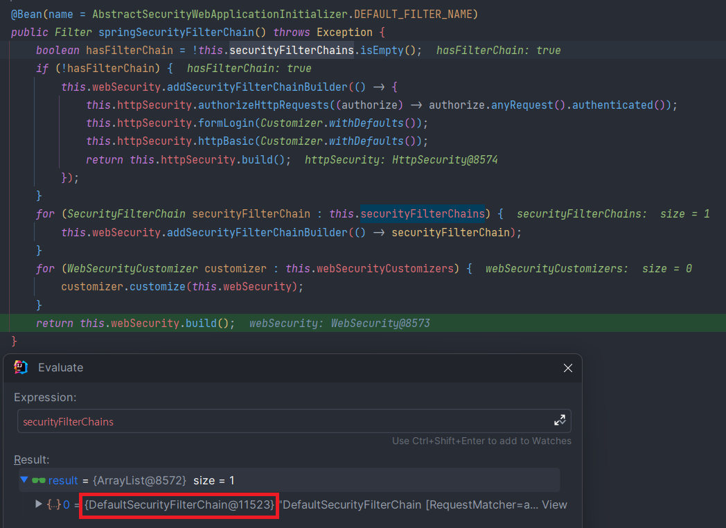 - 여기서 바로 FilterChainProxy(DefaultSecurityFilterChain)을 가져오는 것이다