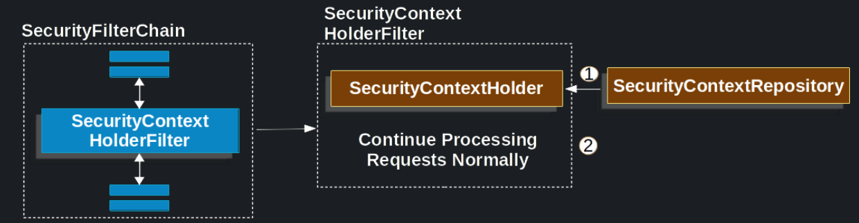 → 1. 요청이 들어오는 시점에 SecurityContextHolder에 SecurityContext를 load해서 넣어주기