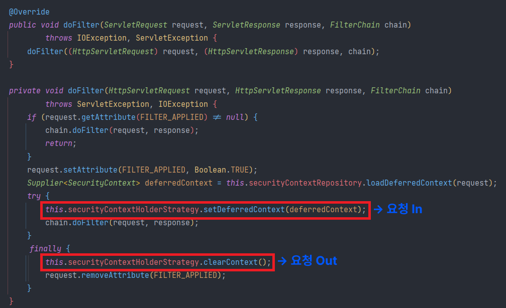 → 2. 요청이 마무리되는 시점에 SecurityConextHolder 비우기