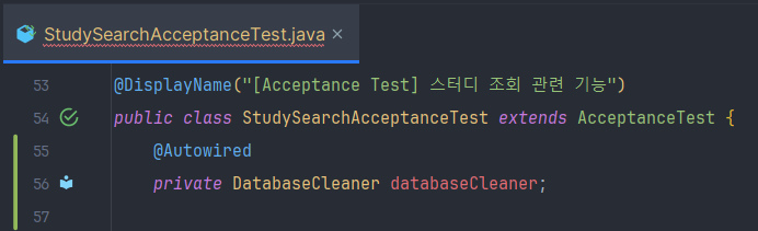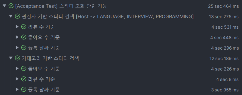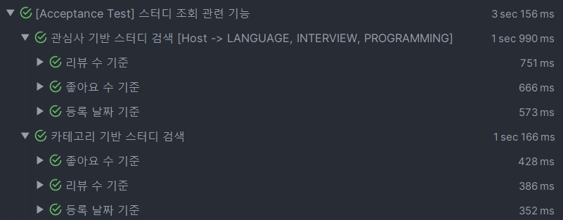 StudySearchAcceptanceTest라는 Root 테스트 클래스로부터 Nested로 각 시나리오 테스트가 존재한다