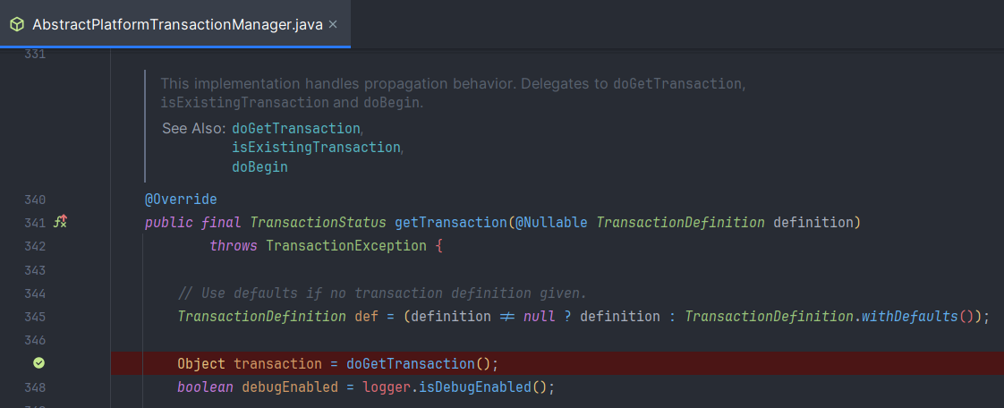 - getTransaction을 통해서 새로운 Transaction을 생성하거나 기존 Transaction에 참여한다