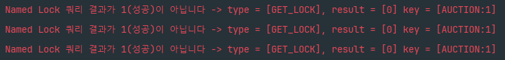 log.error("Named Lock 쿼리 결과가 1(성공)이 아닙니다 -> type = [{}], result = [{}] key = [{}]", type, result, key);