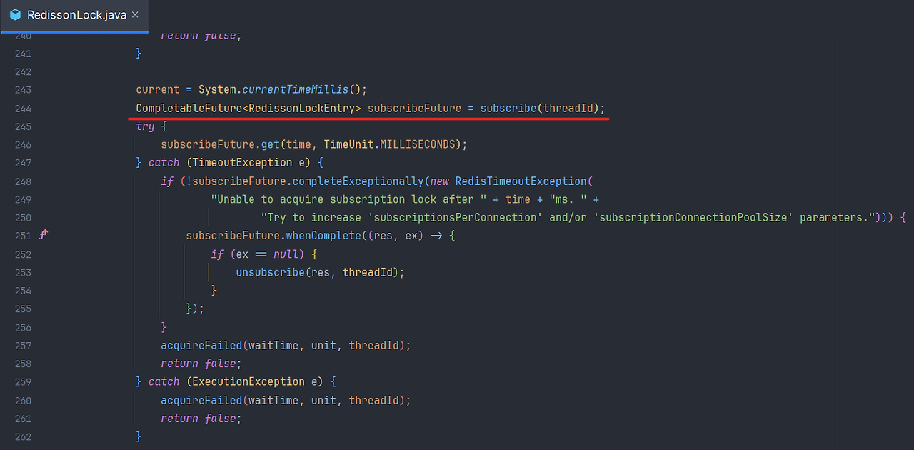 lock을 얻는 프로세스를 따라가보면 subscribe가 보인다