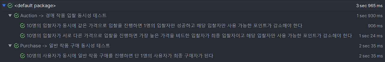 앞선 포스팅에서 Pessimistic Write Lock & MySQL Named Lock을 통해서 경매 입찰 & 작품 구매에 대한 동시성 문제를 해결하였다