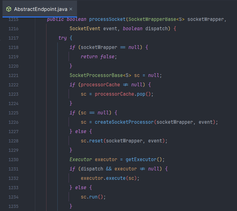 Poller로부터 SocketEvent를 받아서 SocketProcessor로 Wrapping한 후 처리 시작