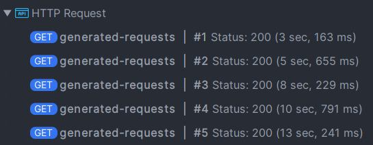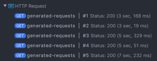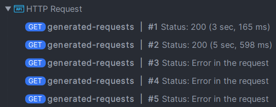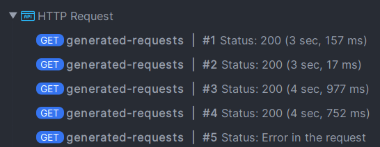 - Request#3,4,5 = maxConnections & acceptCount에 의해서 더이상 Queue에서도 수용할 수 없고 Refused