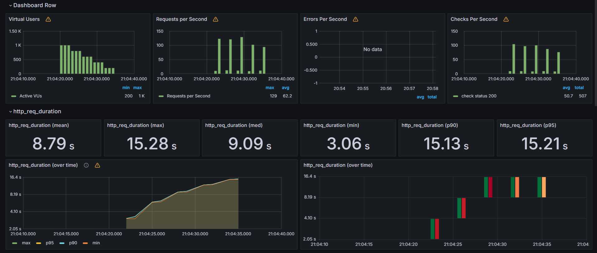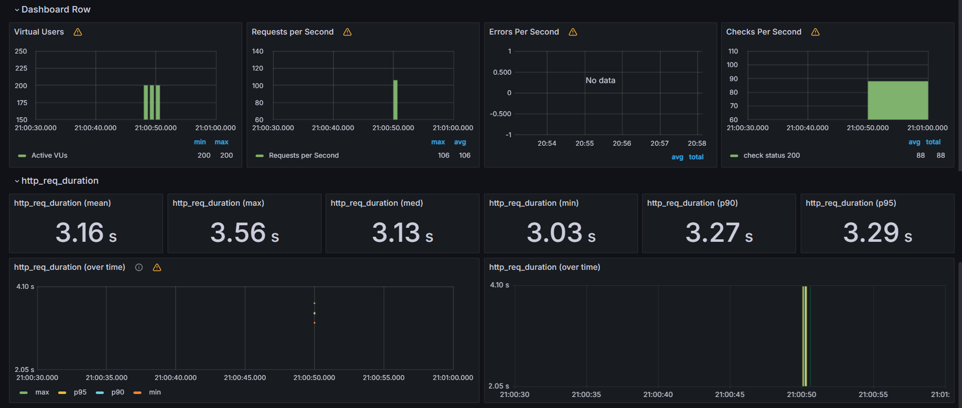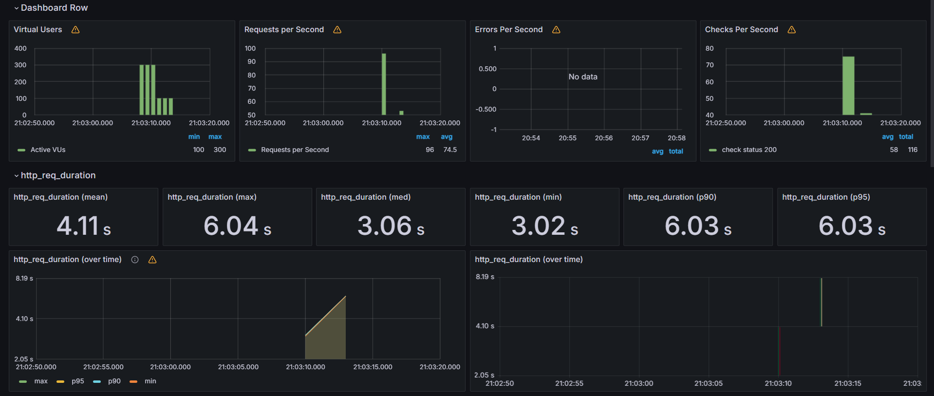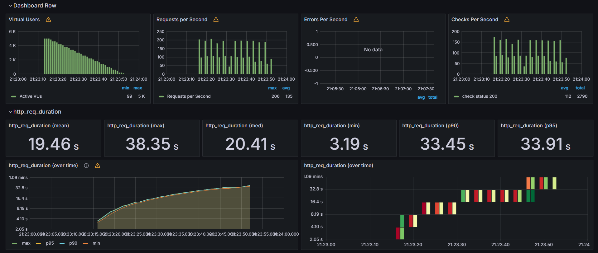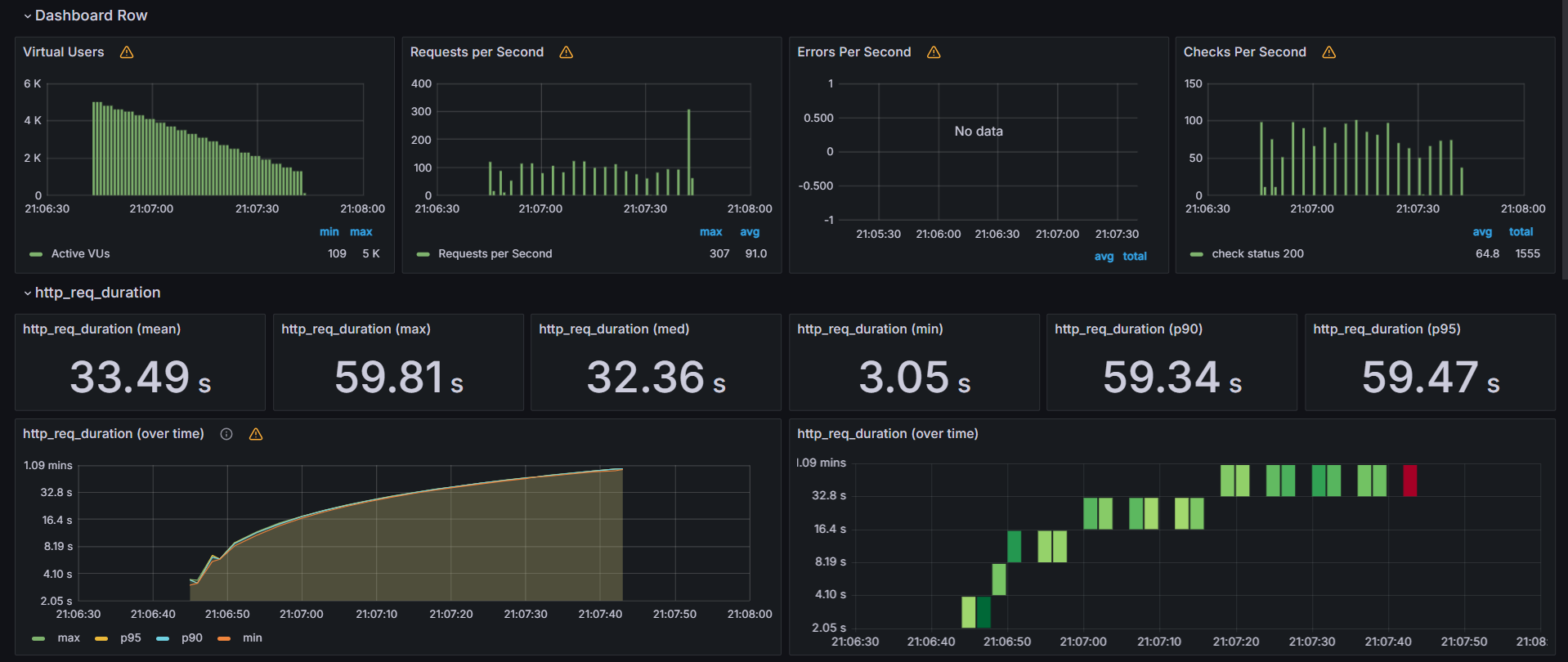 - k6 run –out influxdb=http://localhost:8086/k6db k6-script.js