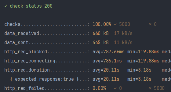 - maxThreads를 늘림으로써 처리할 수 있는 최대 동시 요청 수 또한 늘어나고 그 결과로 5000 Requests도 성공적으로 모두 처리할 수 있게 되었다